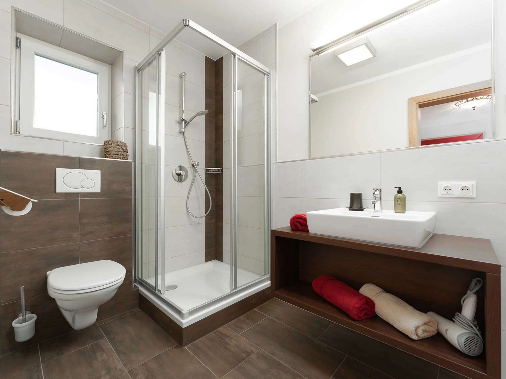 Rooms are well furnished with: shower, toilet, hair dryer, cosmetic wipes and small toiletries, digital TV, safe, closet, 1 balcony, a small desk and a entrance wardrobe